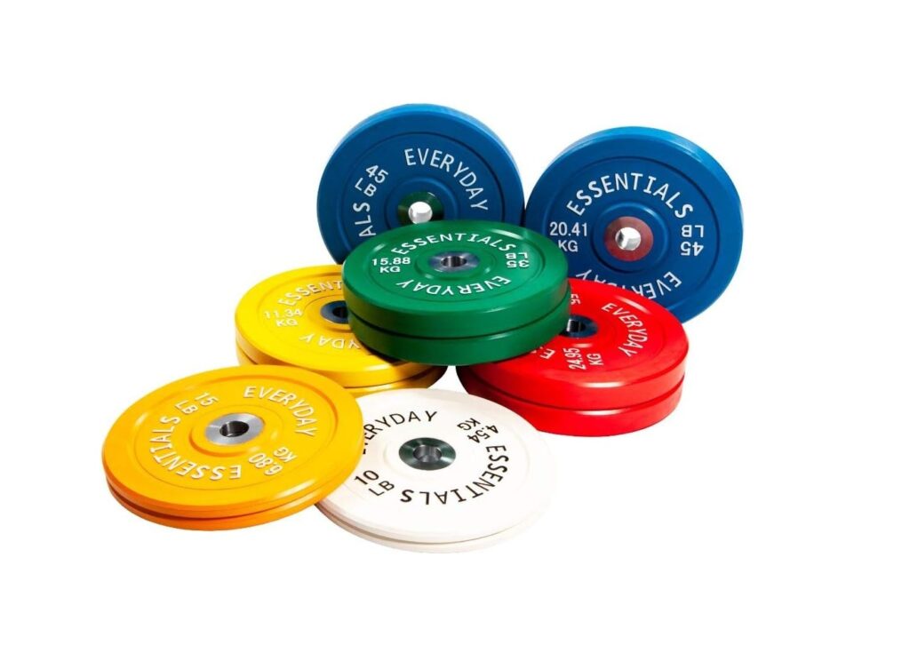 I performed 4 sets of 12 reps of deadlifts using a 45 lbs Olympic bar loaded with pairs of 10, 20, and 25 lbs plates, totaling 155 lbs. As this became easier, I considered purchasing an additional pair of 25 lbs plates to increase the weight further. I use Everyday Essentials plates, which are color-coded: 10 lbs is cream, 20 lbs is orange, 25 lbs is yellow, and 30 lbs is green. However, I haven’t been able to buy green plates yet because they are currently out of stock.
